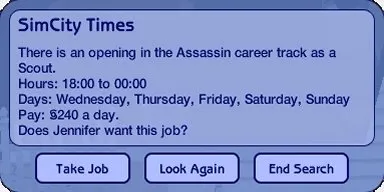 Jobs as a Wallflower and Furniture Assembler are tempting but while Jennifer has never considered life as an Assassin, a job as a Scout pays well and at least she wont get her hands dirty.