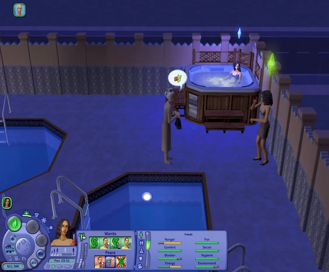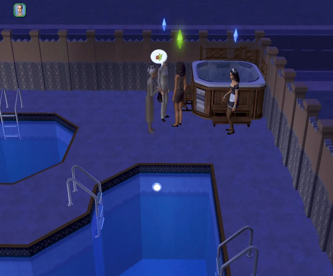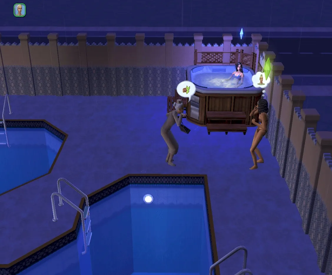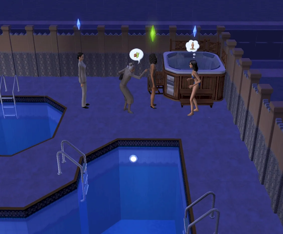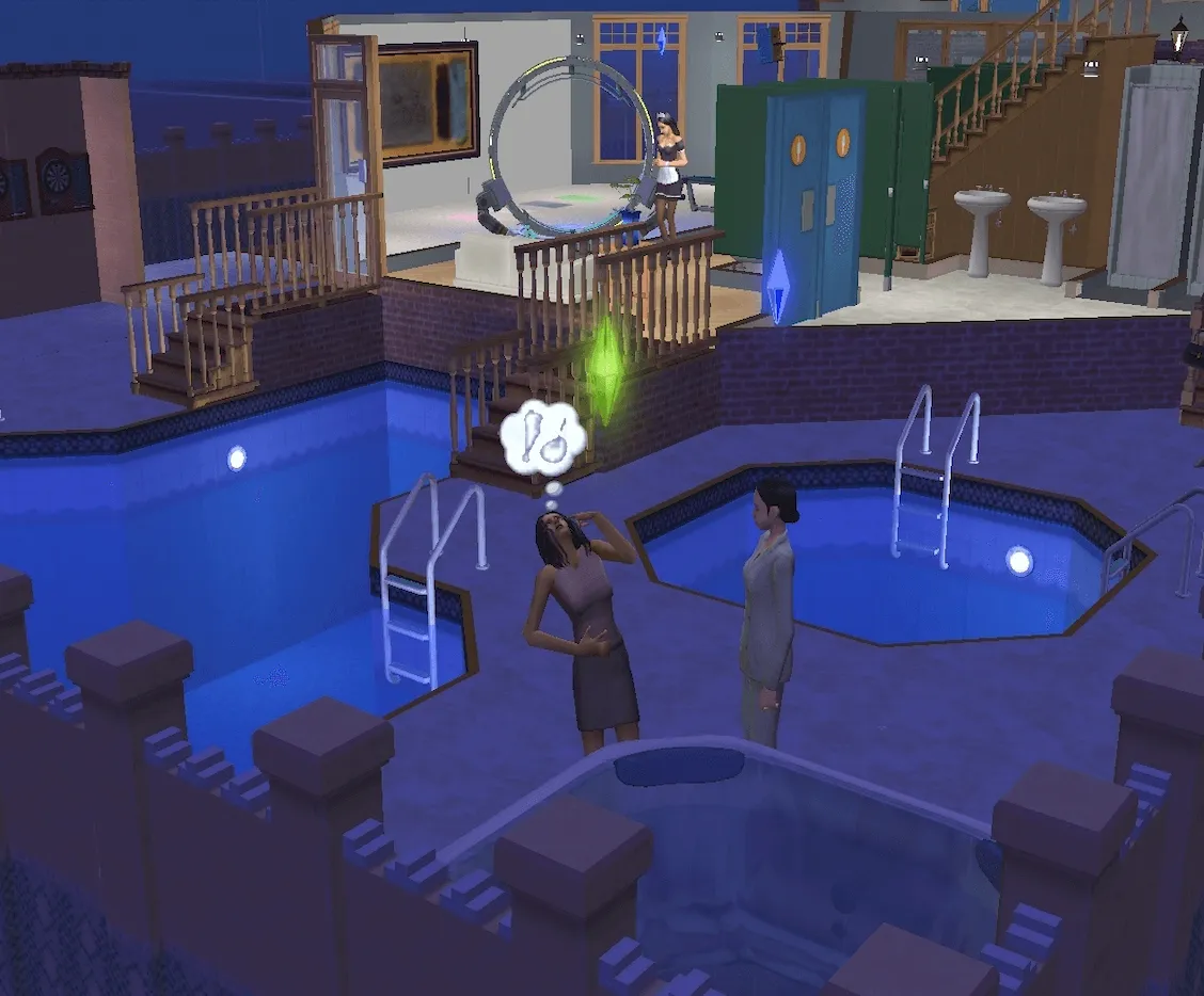 Daniel has taken the unusual but undoubtedly bold step of bringing both his wife, Mary-Sue AND mistress Kaylynn Langerak with him as the siblings visit Maple Pool & Spa in Downtown Sim Heights.