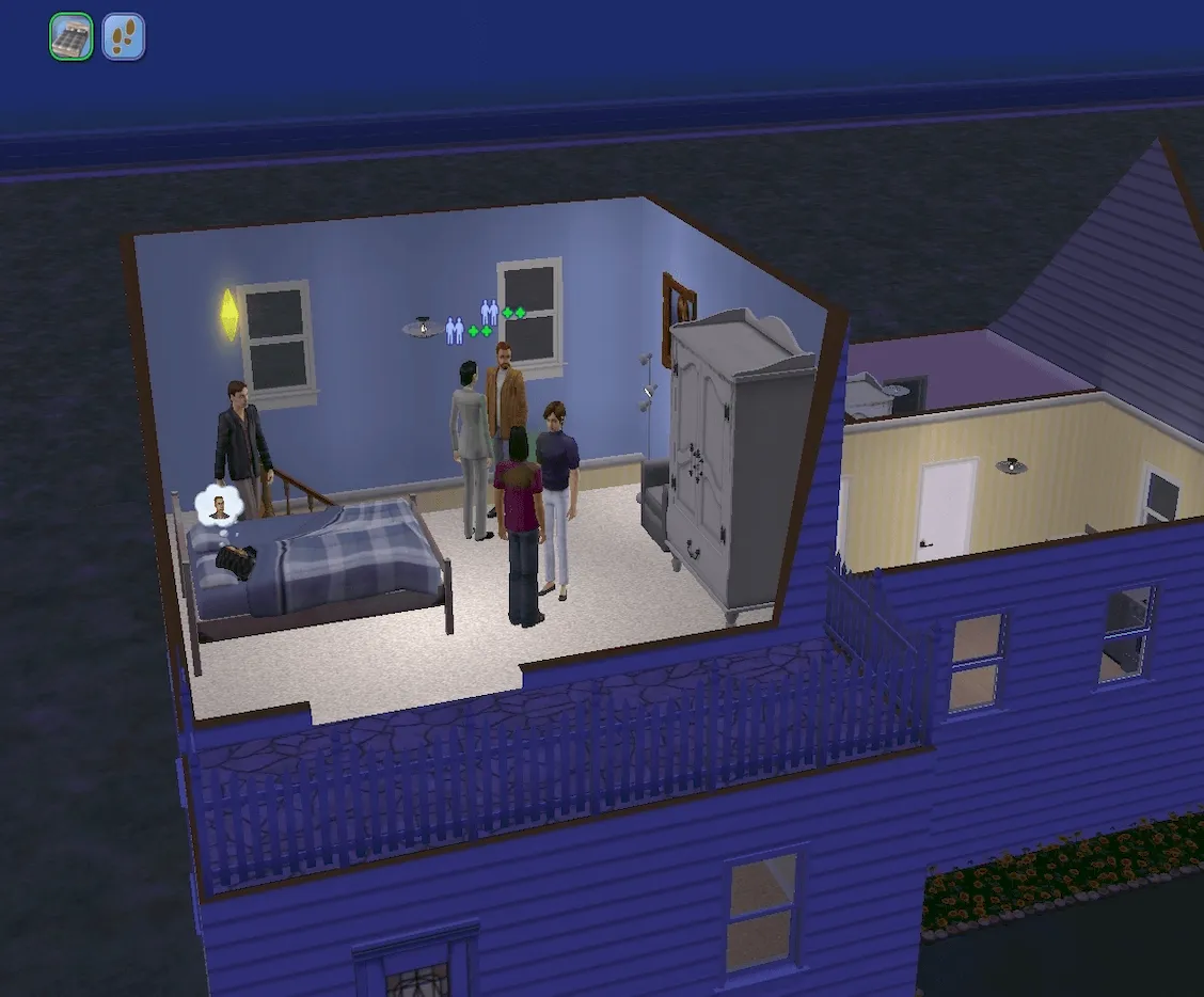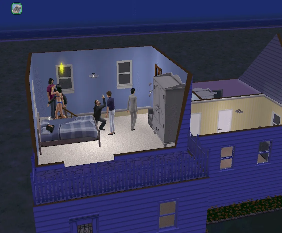 Moments after Jennifer falls asleep, the bedroom becomes the social hotspot of the house. Chris decides here and now would be the best time and place to serenade Tanya.